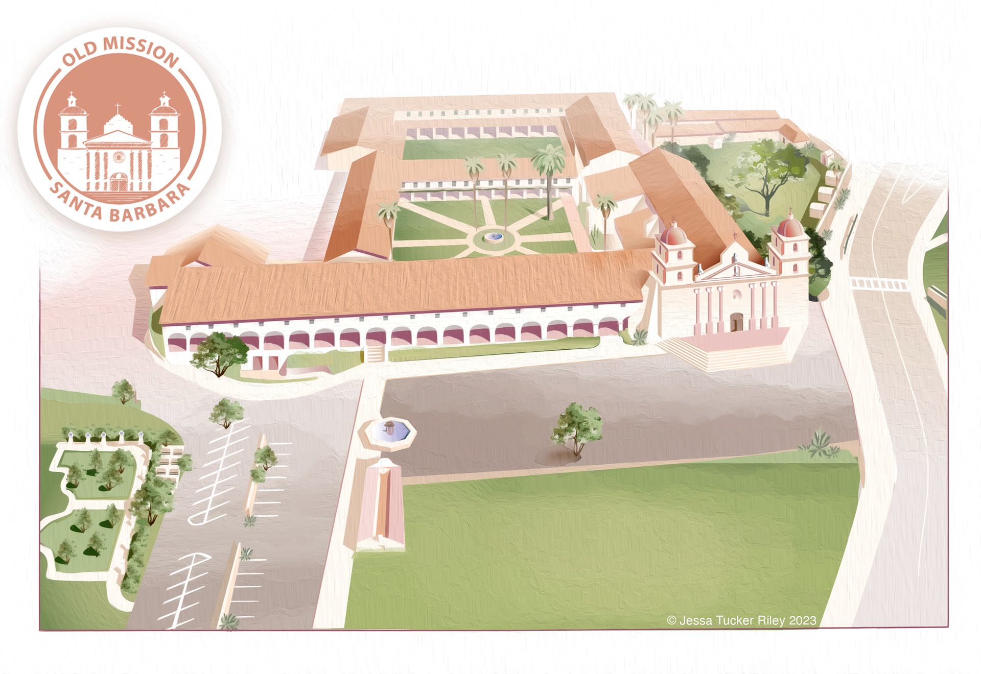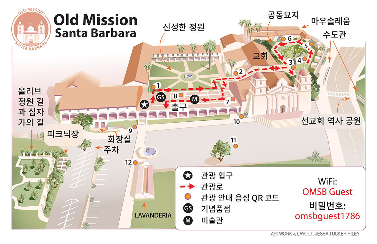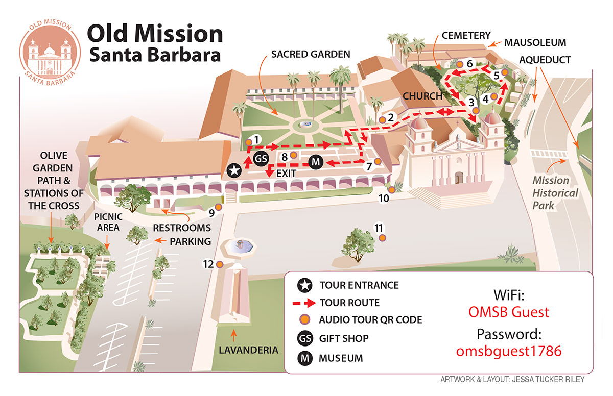 Official SB Mission Tour Route. Translated into 8 languages. QR code sites listed for media rich content. Vector based artwork.